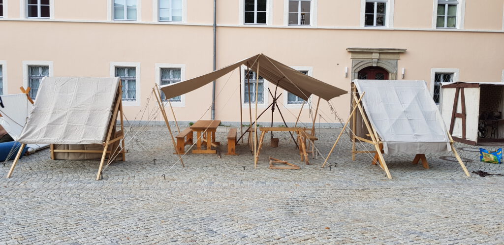 Für den Verein „Die Lausitzer Anno 1180“ sind aus dem Gleichen Material drei weitere Marktstände entstanden. Die Leinenplanen wurden uns von Wanja (Tentiamo / Sew Mill) von Hand genäht und vom Land Sachsen und der Kreissparkasse Bautzen finanziert und gesponsort.