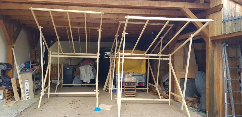 Unsere Werkstatt ist seit 2010 auf verschiedenen Märkten unterwegs. Viele Veranstaltungen haben wir mit unserem Rundholzstand aus Äste absolvieren können. Leider hat dieser stark gelitten und 2019 das zeitliche gesegnet. Auch war die Erweiterung des Angebotes geplant und so mussten neue Stände her.